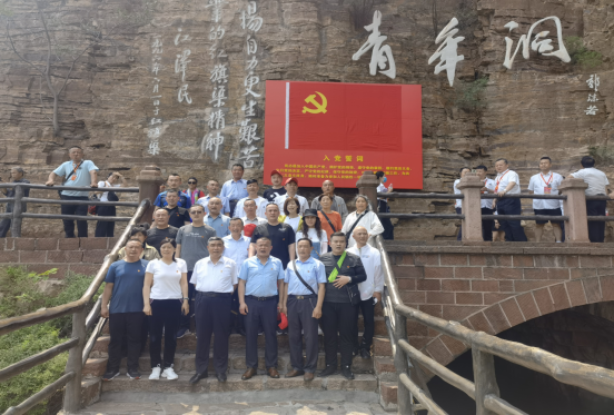 第二站黨員們來(lái)到了舉世聞名的紅旗渠,沿著(zhù)依山而建的渠道參觀(guān)了紅旗渠總干渠的咽喉工程——青年洞,走在緊貼著(zhù)山崖凌空而建的棧道上,看著(zhù)穿山而過(guò)的紅旗渠水,深刻感受到“愚公奮起十春秋,引來(lái)漳河潤田禾”的艱辛和不易,實(shí)地見(jiàn)證了紅旗渠工程的偉大。在紅旗渠紀念館內,全體黨員仔細聆聽(tīng)講解員精彩生動(dòng)的講解,大量珍貴的圖片和實(shí)物,為大家全方位再現了林州人民建造人工天河時(shí)不畏艱險,頑強拼搏,撼天動(dòng)地的恢弘場(chǎng)景,那一刻,大家無(wú)不為“自力更生、艱苦創(chuàng )業(yè)、團結協(xié)作、無(wú)私奉獻”的紅旗渠精神所震撼。