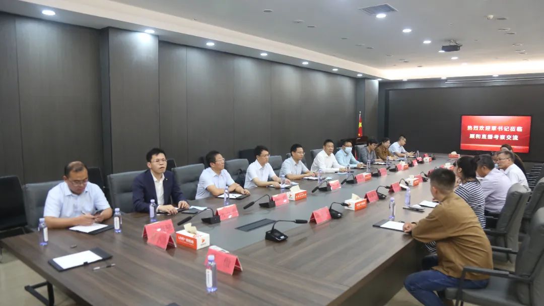 9月1日安徽省淮北市市委書(shū)記覃衛國,淮北市委常委、秘書(shū)長(cháng)汪繼宏,淮北市政府副市長(cháng)黃韋華,市投資促進(jìn)中心主任王莉,市科技產(chǎn)業(yè)投資發(fā)展有限公司董事長(cháng)徐君,喬爾瑪(山東)公司代表程建設等領(lǐng)導一行組成考察團蒞臨順和直播考察調研。山東順和集團黨委副書(shū)記、董事長(cháng)許大勇,山東順和集團副總經(jīng)理李學(xué)鋼陪同考察。