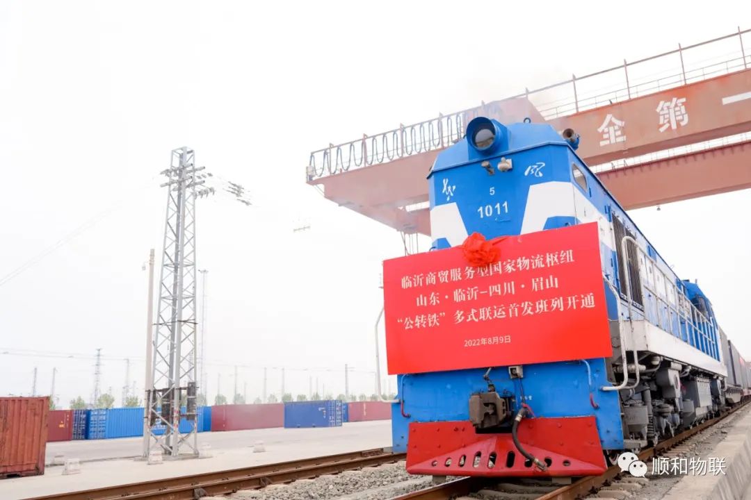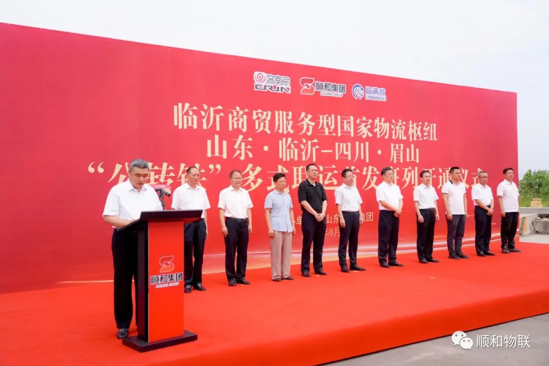 8月9日上午,由山東順和集團(tuán)主辦,山東順和物聯(lián)科技有限公司及事業(yè)合伙人山東臨滿(mǎn)歐國(guó)際物流有限公司、山東順和國(guó)際物流有限公司、臨沂濟(jì)鐵物流園協(xié)辦的“臨沂商貿(mào)服務(wù)型國(guó)家物流樞紐(山東·臨沂—四川·眉山)‘公轉(zhuǎn)鐵’多式聯(lián)運(yùn)首發(fā)班列開(kāi)通儀式”順利舉行。中國(guó)鐵路濟(jì)南局集團(tuán)有限公司貨運(yùn)部主任劉洪青,臨沂市人大常委會(huì)副主任劉飛,臨沂商城黨工委書(shū)記、管委會(huì)主任王景美,臨沂市重點(diǎn)建設(shè)項(xiàng)目服務(wù)中心主任徐寶宏,臨沂市交通局道路運(yùn)輸服務(wù)中心黨委成員、副主任張樹(shù)峰,臨沂市鐵路民航事業(yè)發(fā)展中心黨組成員、副主任朱孔嚴(yán),臨沂車(chē)務(wù)段段長(zhǎng)張鈺國(guó),臨沂車(chē)務(wù)段副段長(zhǎng)劉玉方,蘭山區(qū)政府副區(qū)長(zhǎng)、商城黨組副書(shū)記、管委會(huì)副主任田宗春,濟(jì)南鐵路局濟(jì)鐵物流園總經(jīng)理陳偉,蘭山經(jīng)濟(jì)開(kāi)發(fā)區(qū)管委會(huì)副主任鄭峰,蘭山區(qū)交通局局長(zhǎng)董建梅,蘭山區(qū)發(fā)改局副主任朱雪松,山東順和集團(tuán)黨委書(shū)記趙玉璽,山東臨滿(mǎn)歐國(guó)際物流有限公司總經(jīng)理咸友濤及順和集團(tuán)各企業(yè)、部門(mén)人員出席儀式,儀式由順和集團(tuán)董事長(zhǎng)許大勇主持。