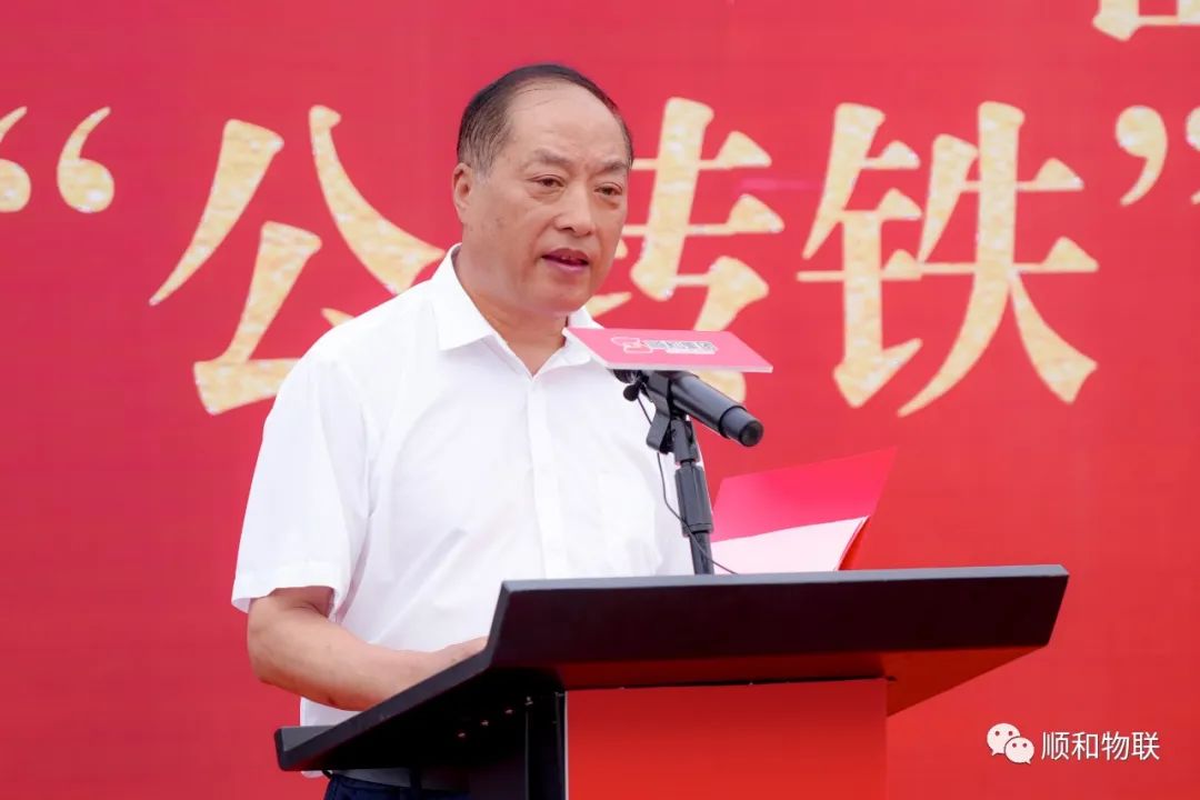 中國(guó)鐵路濟(jì)南局集團(tuán)有限公司貨運(yùn)部主任劉洪青在致辭時(shí)表示:開(kāi)行臨沂-眉山“公轉(zhuǎn)鐵”班列是順和集團(tuán)積極響應(yīng)國(guó)家“公轉(zhuǎn)鐵”號(hào)召,打造現(xiàn)代物流運(yùn)輸新格局的重要舉措,為建設(shè)臨沂商貿(mào)服務(wù)型國(guó)家物流樞紐發(fā)揮了積極的推動(dòng)作用,濟(jì)南局會(huì)給予全力支持和幫助。