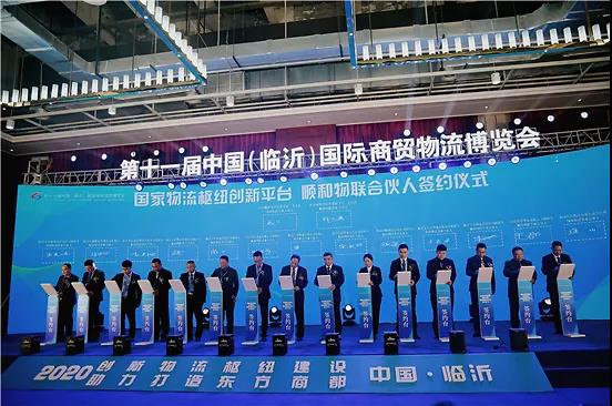 隨后,國際物流與運輸學(xué)會(huì )院士、中國交通運輸協(xié)會(huì )副會(huì )長(cháng)兼秘書(shū)長(cháng)李剛、國際物流與運輸學(xué)會(huì )院士、國際物流與運輸學(xué)會(huì )中國分會(huì )會(huì )長(cháng)王恩森、臨沂市政府副秘書(shū)長(cháng)王鑫、臨沂商城黨工委委員、管委會(huì )副主任徐東勝上臺參加國家物流樞紐創(chuàng )新平臺啟動(dòng)儀式。據悉,該創(chuàng )新平臺——順和物聯(lián)預計實(shí)現年吞吐量1500萬(wàn)噸,物流總額500億元,提供就業(yè)崗位10000余個(gè)左右;建立“干線(xiàn)運輸+區域分撥+城市配送”的現代化樞紐運行網(wǎng)絡(luò ),多式聯(lián)運干線(xiàn)運輸規模達到30%左右,單元化、集裝化運輸比重超過(guò)40%,實(shí)現臨沂物流成本比全國平均現有水平低20-30%的基礎上再降低10%以上,促進(jìn)經(jīng)濟要素的集聚,打造商貿型樞紐經(jīng)濟與“商倉流”的臨沂模式,助力臨沂打造東方商都。