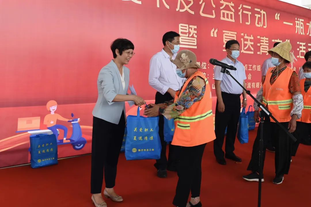 調(diào)研組深入園區(qū)實地走訪,了解貨運物流司機的權(quán)益保障情況,并參加“關(guān)愛卡友公益行動、‘一瓶水傳遞愛’暨‘夏送清涼’活動”,為貨運物流司機職工代表捐贈保險、發(fā)放礦泉水等防暑物資,隨后與物流企業(yè)有關(guān)負責(zé)人召開專題研討會。