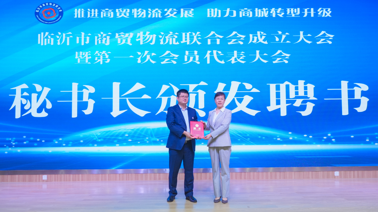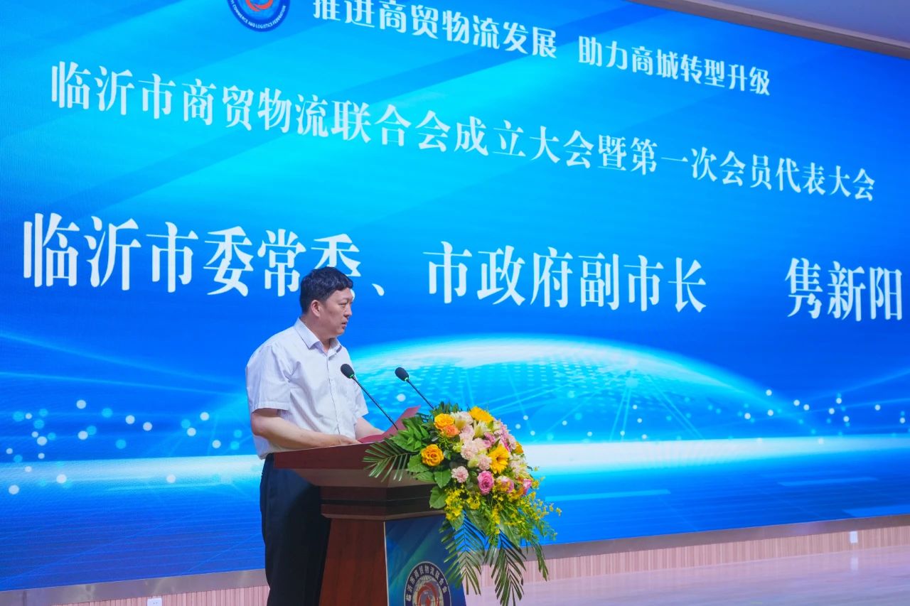 5月18日上午,臨沂市商貿物流聯(lián)合會(huì )成立大會(huì )暨第一次會(huì )員代表大會(huì )在臨沂商貿服務(wù)型國家物流樞紐山東順和國際智慧物流園順利舉行。臨沂市委常委、市政府副市長(cháng)雋新陽(yáng),臨沂市政府政務(wù)保障促進(jìn)中心副主任郭慎偉,臨沂市商務(wù)局黨組書(shū)記、局長(cháng)劉春晨,臨沂商城黨工委書(shū)記、管委會(huì )主任武傳亮,蘭山區委書(shū)記孫德士,原臨沂市政府黨組成員、臨沂商城管委會(huì )主任姚明,臨沂市行政審批服務(wù)局黨組成員、副局長(cháng)劉彥強,臨沂市民政局黨組成員、副局長(cháng)孫文婷,蘭山商城黨委書(shū)記、管委會(huì )主任田宗春,蘭山區政府黨組成員、副區長(cháng)李兆國,蘭山區人大常委會(huì )副主任王玉杰,蘭山街道黨工委書(shū)記姜修偉,中國商業(yè)聯(lián)合會(huì )采購商分會(huì )副會(huì )長(cháng)孫琛瑋,山東省物流與交通運輸協(xié)會(huì )常務(wù)副會(huì )長(cháng)魯友水,臨沂市沂蒙精神傳承促進(jìn)會(huì )會(huì )長(cháng)于愛(ài)梅,臨沂道德教育促進(jìn)會(huì )會(huì )長(cháng)相榮濤,及相關(guān)單位負責人出席。同時(shí)中國物流與采購聯(lián)合會(huì )、中國交通運輸協(xié)會(huì )、中國商業(yè)聯(lián)合會(huì )、中國科學(xué)院空天信息創(chuàng )新研究院、山東省物流與交通運輸協(xié)會(huì )、山東省物流與采購協(xié)會(huì )、深圳金雅??毓杉瘓F有限公司、香港博覽展覽、中國國際電子商務(wù)博覽會(huì )組委會(huì )為聯(lián)合會(huì )成立送來(lái)賀信和誠摯的祝福。