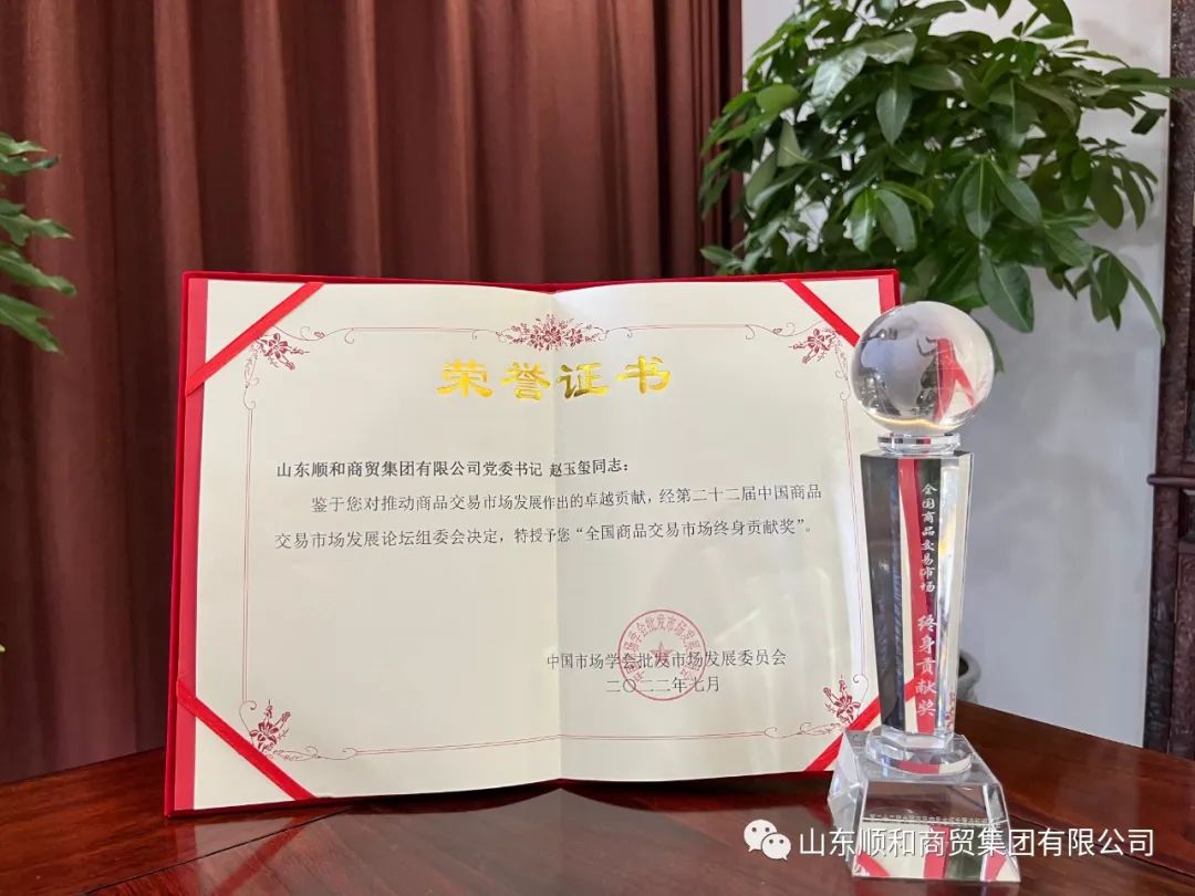 大會現(xiàn)場,集團(tuán)黨委書記趙玉璽被中國市場學(xué)會批發(fā)市場發(fā)展委員會授予“全國商品交易市場終身貢獻(xiàn)獎”榮譽(yù)稱號。