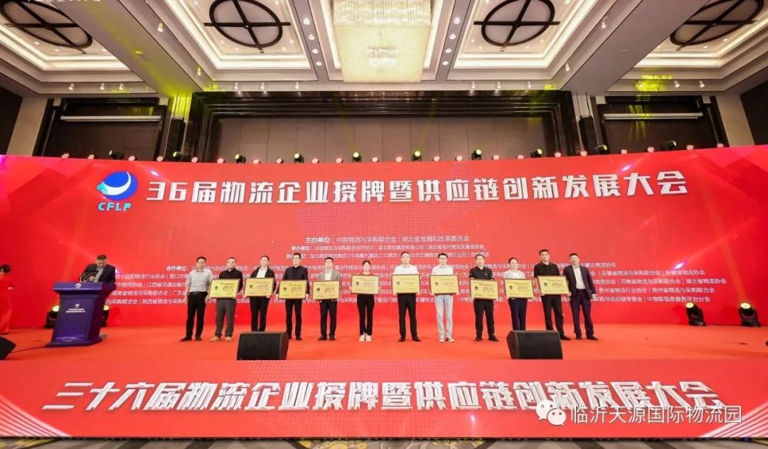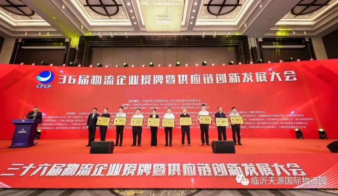 9月27日,由中國物流與采購聯(lián)合會(huì )、湖北省發(fā)展和改革委員會(huì )主辦的“36屆物流企業(yè)授牌暨供應鏈創(chuàng )新發(fā)展大會(huì )”在湖北武漢召開(kāi)。大會(huì )由中國物流與采購聯(lián)合會(huì )副秘書(shū)長(cháng)兼評估辦主任楊國棟主持,中國物流與采購聯(lián)合會(huì )副會(huì )長(cháng)兼秘書(shū)長(cháng)崔忠付出席大會(huì )并作評估工作報告,湖北省人民政府副秘書(shū)長(cháng)趙俊出席大會(huì )并致辭。集團副總經(jīng)理、臨沂天源國際物流有限公司總經(jīng)理宋其良攜園區獲得A級企業(yè)榮譽(yù)稱(chēng)號的物流業(yè)戶(hù)參會(huì )。