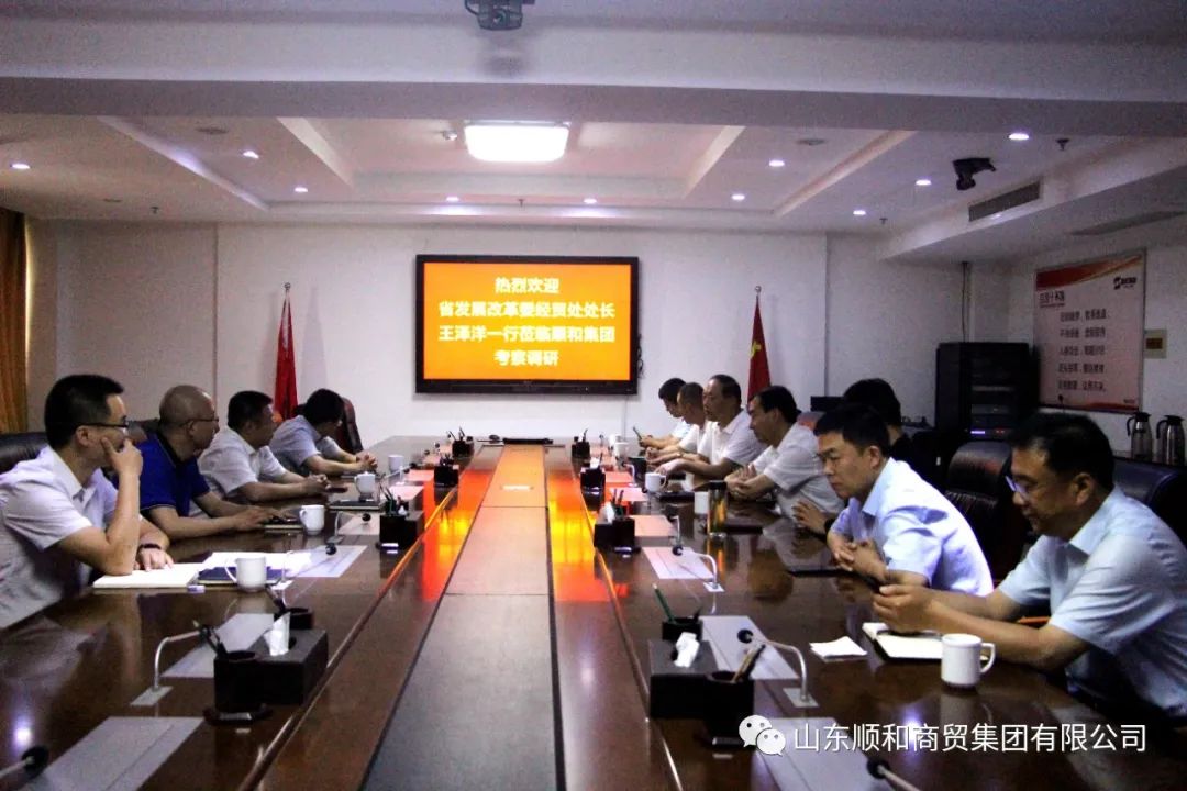 6月16日上午,省發(fā)展改革委經(jīng)貿(mào)處處長王澤洋一行蒞臨順和集團考察調(diào)研,市發(fā)展改革委副主任陳迪鋒,市發(fā)展改革委財信科科長朱崇琳,蘭山區(qū)委常委、區(qū)政府副區(qū)長、黨組副書記、經(jīng)濟開發(fā)區(qū)黨工委書記公茂禮,區(qū)政府辦公室黨組成員、副主任張克存,區(qū)服務(wù)發(fā)展中心副主任朱雪松,順和集團黨委書記趙玉璽,集團總經(jīng)理趙國偉,山東商貿(mào)物流研究院順和分院院長曹松榮陪同接待。