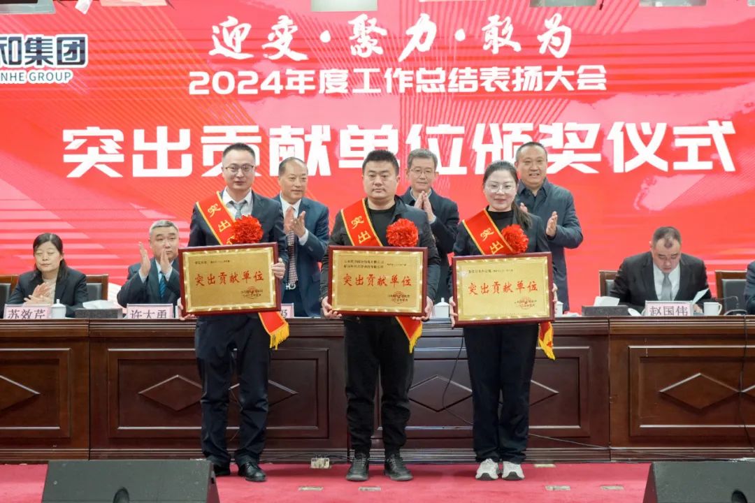 會上,集團黨委副書記許大勇宣讀了《山東順和集團2025年總體工作思路》,集團黨委副書記、社區(qū)黨總支書記李慶武宣讀了《山東順和集團關于表揚2024年度“杰出工作者、突出貢獻單位、先進工作者、誠信經營業(yè)戶”等榮譽的決定》,主席臺領導向獲獎單位和個人進行頒獎。