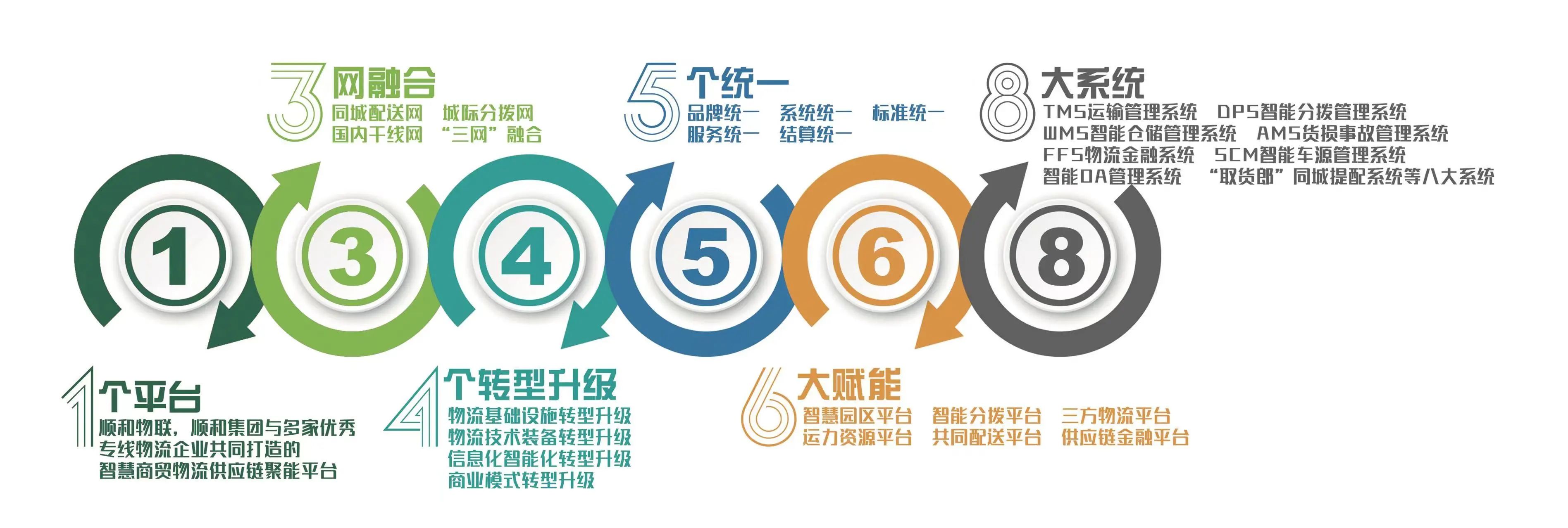 順和國際智慧物流園搭建臨沂首個(gè)智慧商貿物流供應鏈聚能創(chuàng )新平臺——順和物聯(lián),按照趙玉璽提出的1個(gè)平臺上實(shí)現3網(wǎng)融合、4個(gè)轉型升級、5個(gè)統一、6大賦能、8大系統的“1+34568”發(fā)展戰略。即在順和物聯(lián)平臺上,實(shí)現同城配送網(wǎng)、城際分撥網(wǎng)、國內干線(xiàn)網(wǎng)“三網(wǎng)融合”的物流網(wǎng)絡(luò )體系;推動(dòng)臨沂物流基礎設施,物流技術(shù)裝備,物流信息化、智能化,物流商業(yè)模式的四個(gè)轉型升級;以“品牌統一、系統統一、標準統一、服務(wù)統一、結算統一”五個(gè)統一為抓手;通過(guò)打造六大賦能平臺;配套八大智慧系統,達到產(chǎn)業(yè)共享化、樞紐智慧化,實(shí)現“點(diǎn)收全國、點(diǎn)發(fā)全國”。