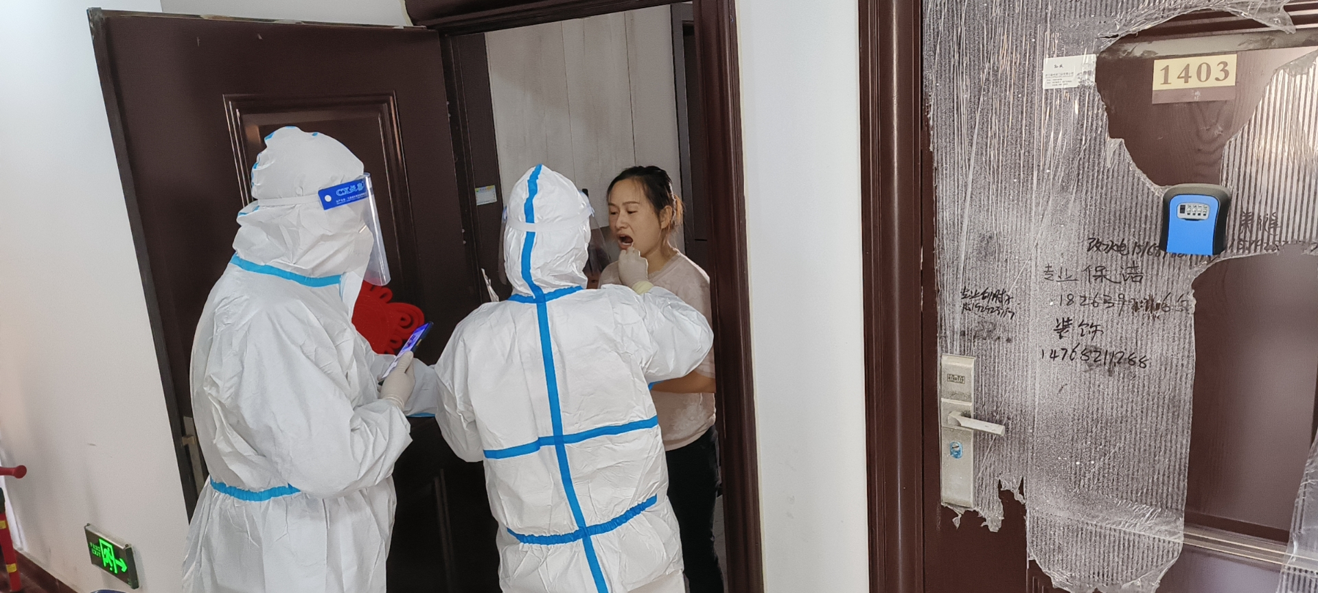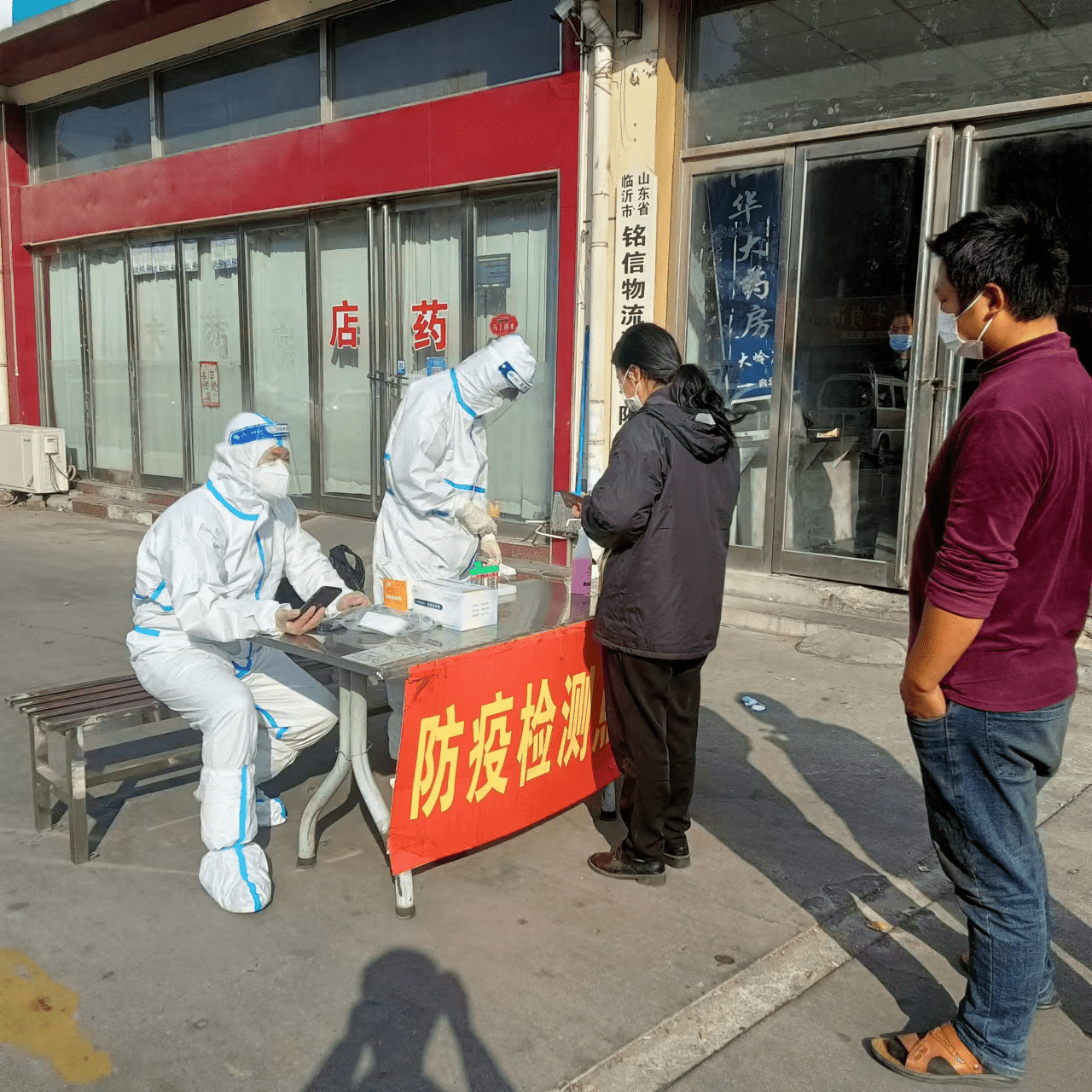 李莊社區工作人員協(xié)助醫護人員為居民做核酸檢測
