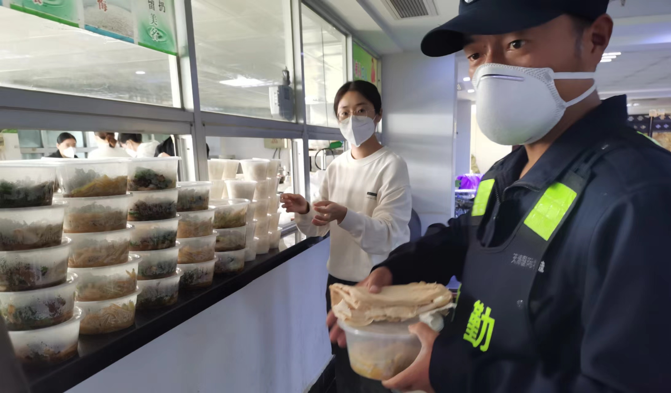 一份份打包好的餐盒,里面裝滿(mǎn)了熱氣騰騰的飯菜。順和集團5樓食堂里,幾名工作人員正在緊張有序的忙碌著(zhù),為了園區防疫工作人員能吃上熱乎的飯菜,集團黨政辦公室工作人員劉躍龍已經(jīng)駐守單位近1周了,每天在食堂里忙碌不停。最開(kāi)始聽(tīng)說(shuō)園區要封控的時(shí)候,他所住的小區并沒(méi)有封控,接到單位通知后,他第一時(shí)間奔赴崗位,每天負責近100人的疫情防控工作人員的后勤保障,從不叫苦叫累。