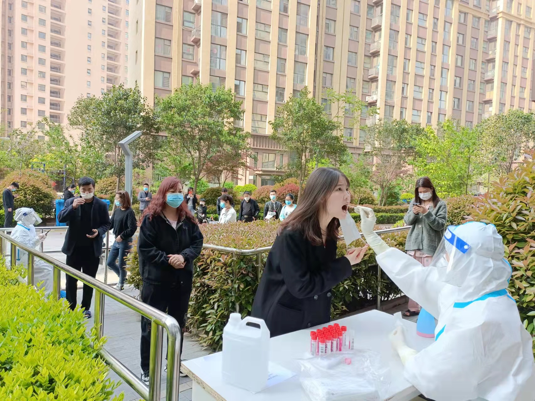 順和國際園區進(jìn)行日常消殺,組織留守人員日常核酸檢測