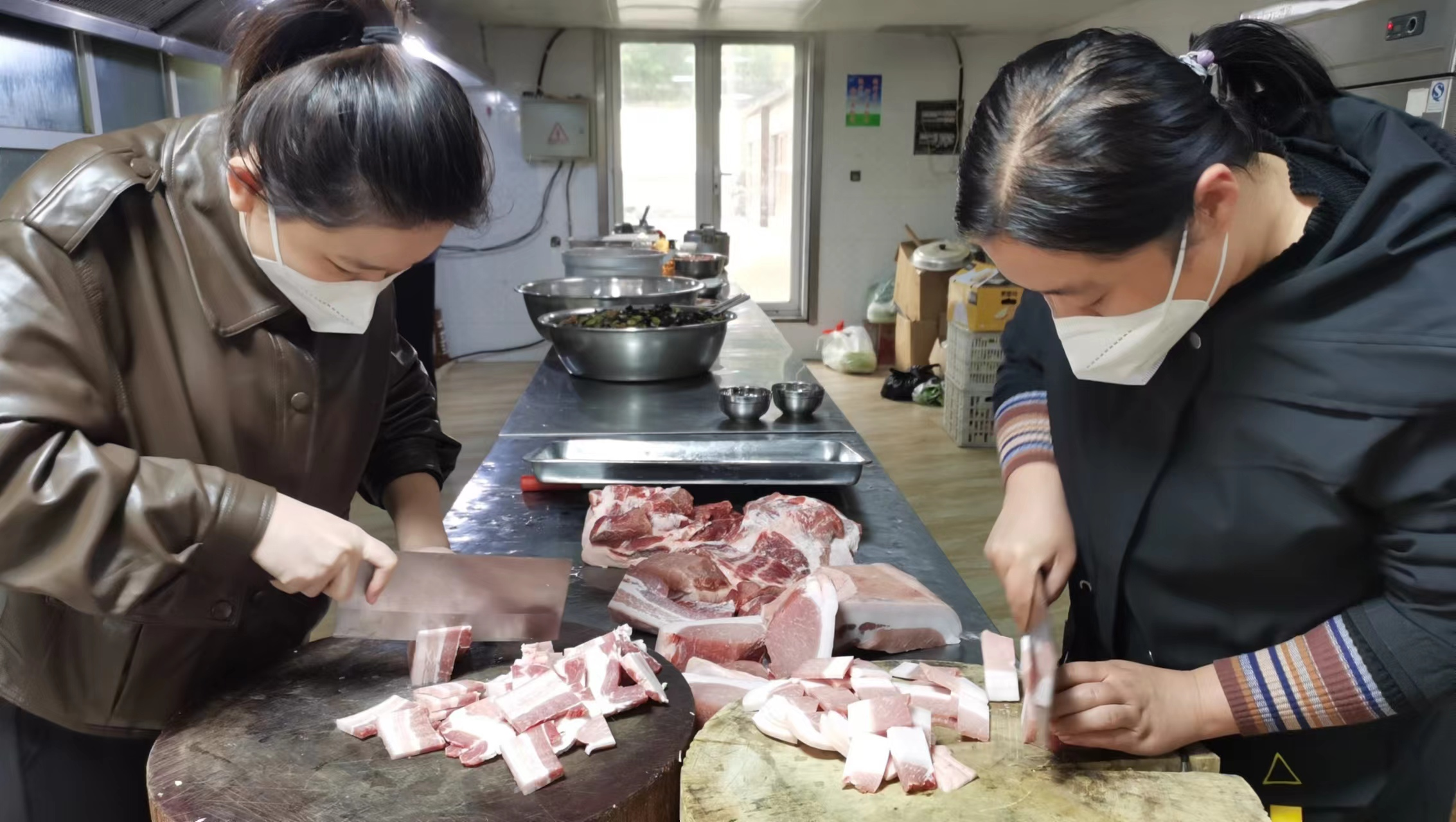 集團辦公室劉躍龍正在食堂準備工作餐,法務(wù)辦侯文靜、付慧敏,安全辦李倩,辦公室呂瑤、研究院殷亞月等協(xié)助